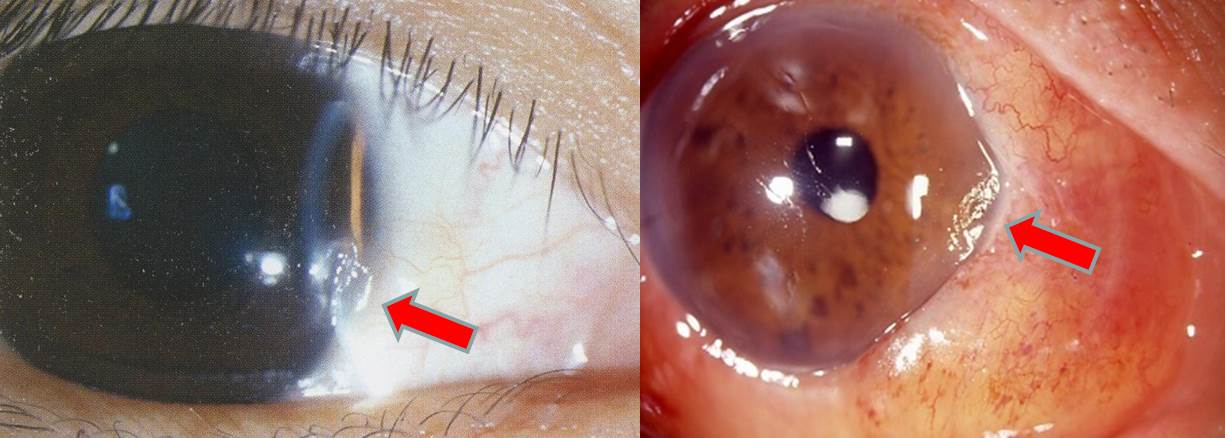 노인환과 각막윤부혈관망 사이의 무혈관의 주변 각막이 얇아지는 변성으로 흔하지 않으며 노인환자에서 주로 나타납니다. 난시를 만드는 경우가 적으며 시력에 영향을 주지 않습니다. 따라서 신생혈관이나 염증, 천공의 위험성이 없고 증상이 없으면 치료가 필요하지 않습니다.
