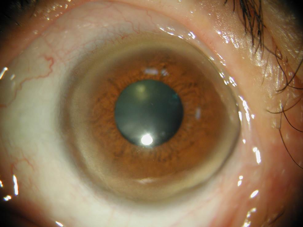 주로 동공근처에서 보이고 밀가루 먼지같이 보입니다. 대부분 시력저하는 없으며 유전될 수 있습니다. 조직검사상 지방갈색소과 같은 변성물질로 채워진 공포들이 후부 각막기질 각막세포에서 발견됩니다. 치료는 필요하지 않습니다.